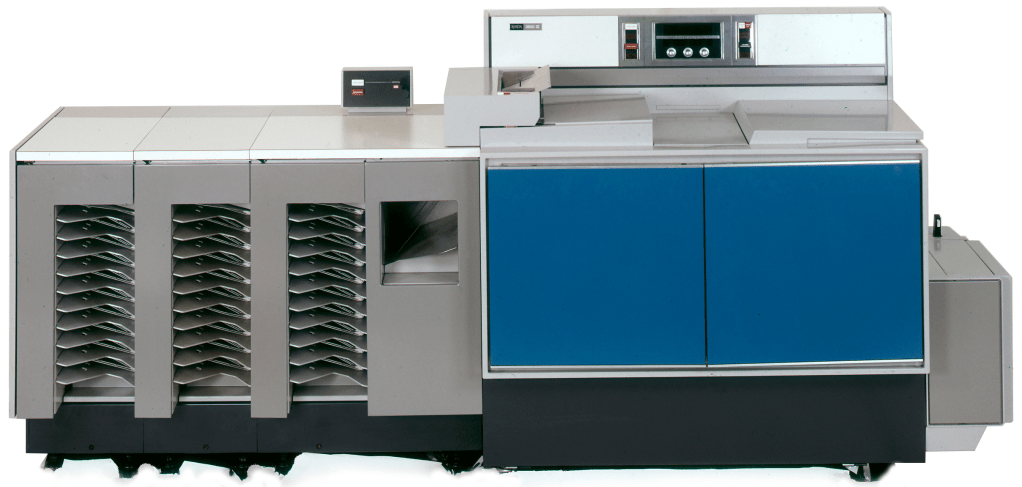 The 1970s introduced the Xerox 6500, its firs color copier. Then through the mid to late 70s came the “Xerox 9200 Duplicating System.” The 9200 was two times as fast as the 3600. Clocking in at two impressions per second (7200 per hour). It was then followed by the auto-duplexing 9400 and then the 9500 which added variable zoom reduction and electronic lightness/darkness control.